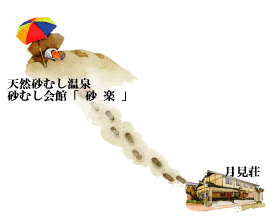 私たちの旅館「月見荘」は、砂浜のあちらこちらから蒸気が立ち昇る指宿天然砂むし温泉「砂楽」と、目と鼻の先にあり、移動の手間や時間を気にすることなくご利用いただけます。 昔から湯治客の絶えないのは、効能に依るものでしょう。 疲労回復、健康増進はもとより、神経痛、腰痛、リウマチ、慢性病など、まだまだたくさんございます。 美容と健康維持に欠かせないと、永年通ってくださるお客様も少なくありません。 鹿児島港の景色と波の音を堪能し、珠のような汗をかきながら、心も体も温まってください。 |
